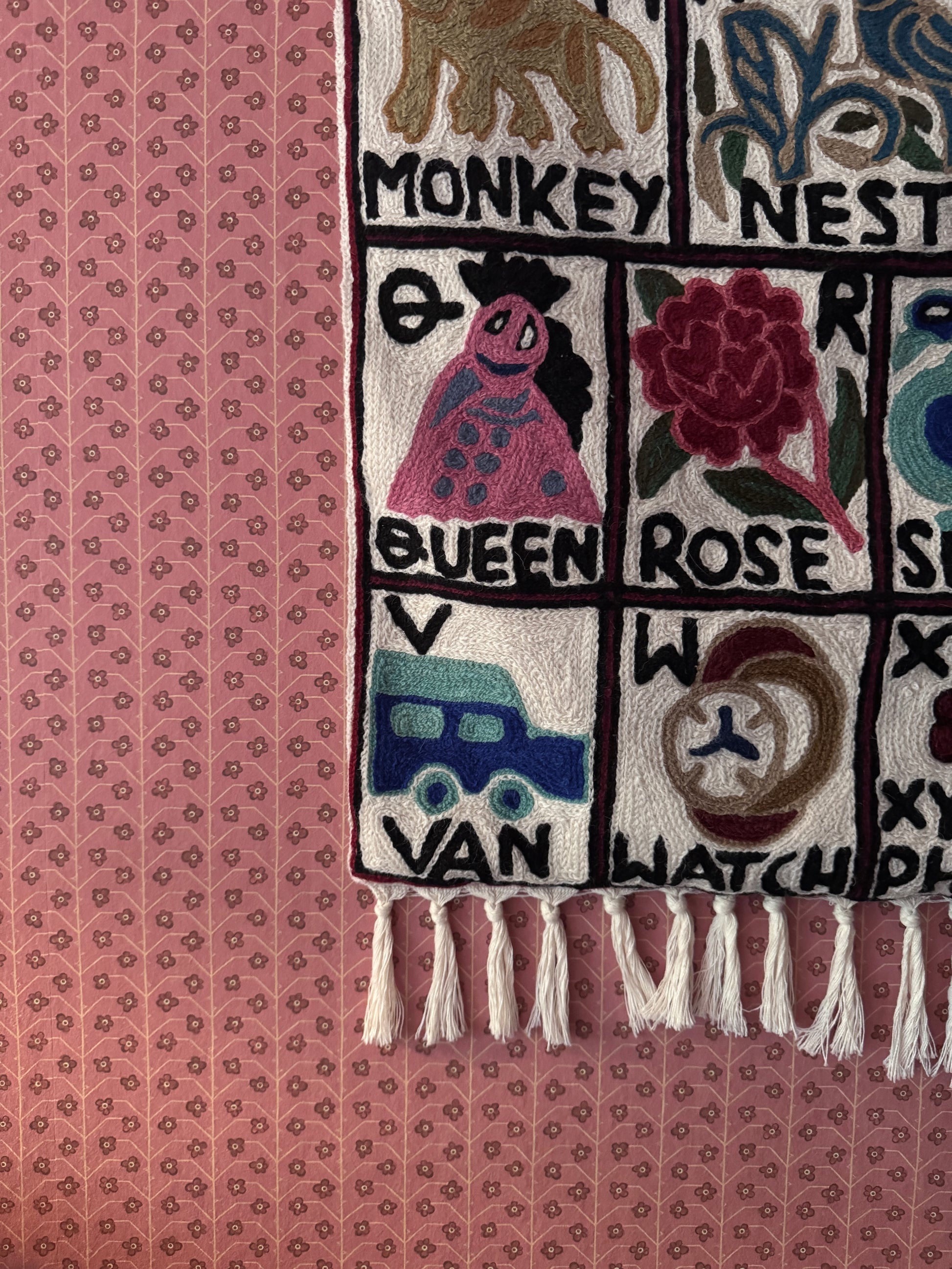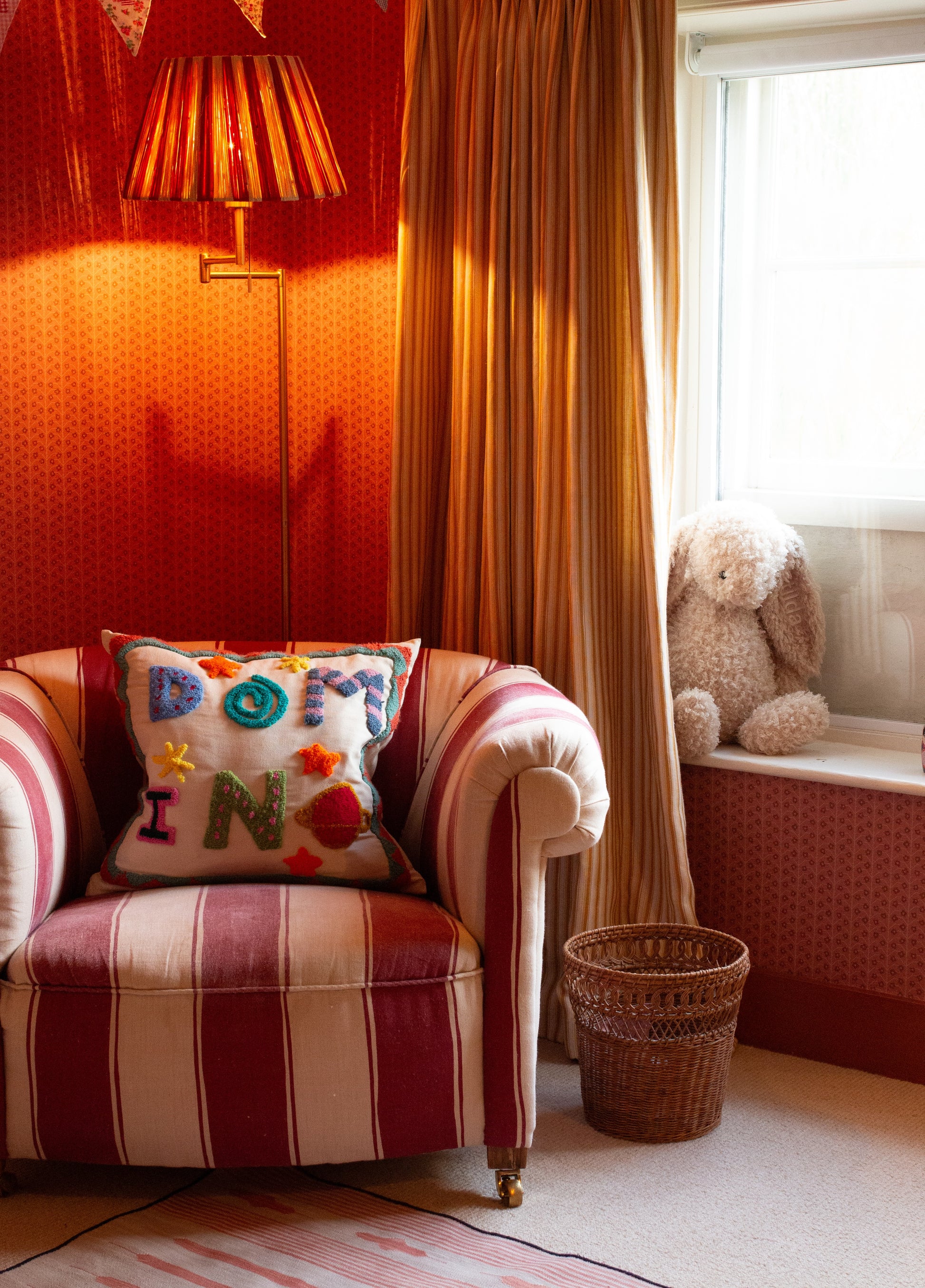 Works well with our 'Chevron Stripe' in peat, 'New Stripe' in moss and duck egg, 'Quercus' in rhubarb, 'Harlequin', 'Statement Stripe' in mulberry and pacific, 'Modern Ticking' in saffron, 'Pattern Play' in candy, 'Canopy' in peat and 'Squiggle' in pacific.