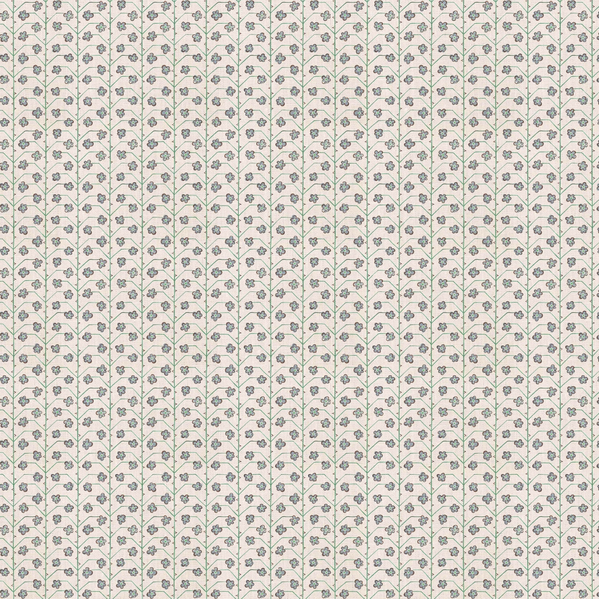 Ground is similar to Farrow+Ball 'Dimity'. Colour palette is similar to Farrow+Ball 'Arsenic' and 'Selvedge'